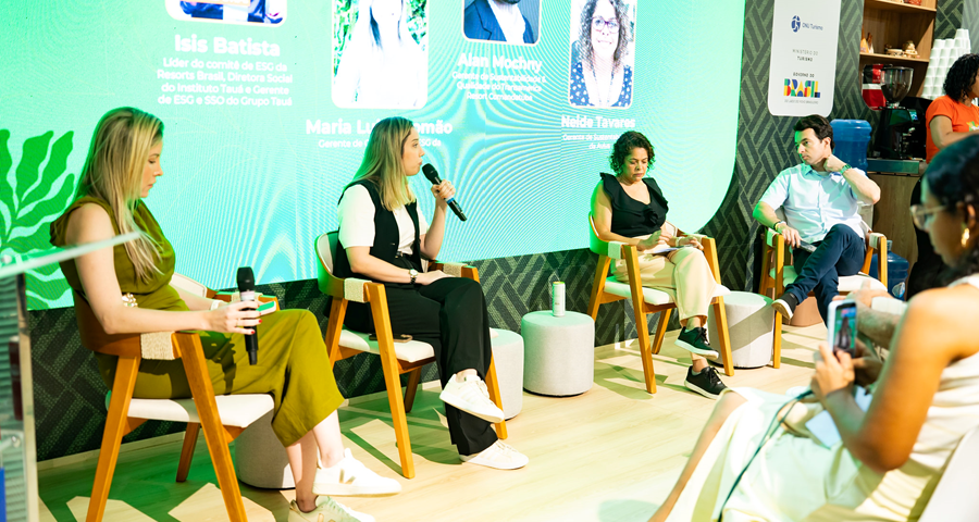 O painel reuniu lideranças de sustentabilidade de quatro associados — Amarante, Transamerica Comandatuba, Aviva e Tauá — para apresentar práticas que já reposicionam os resorts como agentes ativos da transição climática. A abertura foi conduzida por Ísis Batista, Líder do Comitê ESG da Resorts Brasil, Diretora Social do Instituto Tauá e Gerente de ESG & SSO do Grupo Tauá, que contextualizou a evolução coletiva da agenda ESG endereçada pela associação.